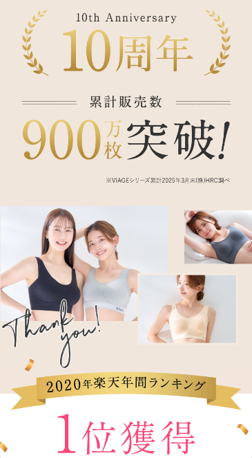 ※1 着用時の補正効果による ※2 VIAGEシリーズ累計2025年7月末時点 ※3 集計期間2019年09月25日(水)~2020年09月24日(木) ※4 部門:ベストセラー獲得、レディースインナーセット欲しいものランキング1位獲得 集計期間2023年3月9日~2023年5月22日