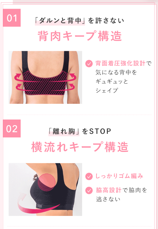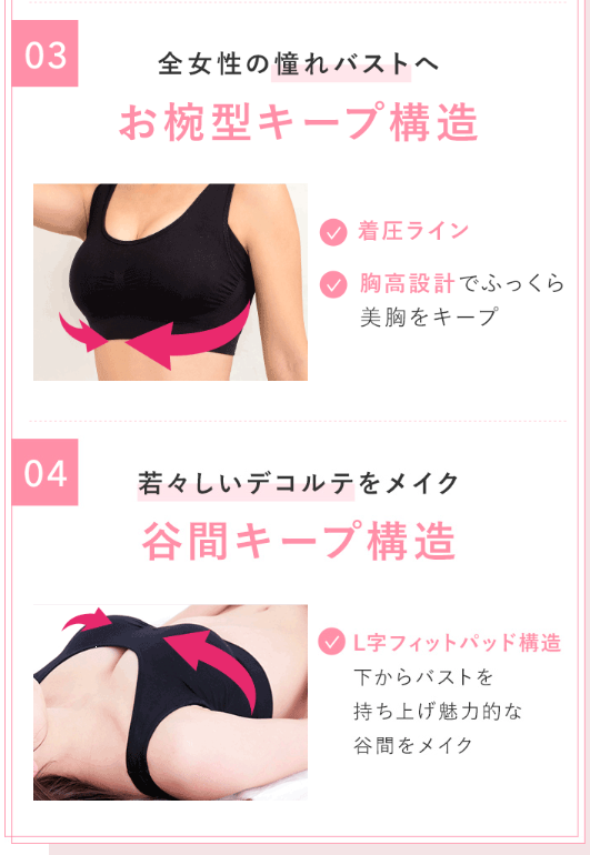 就寝時のバストの動きを抑えたい方に向いている設計 です。