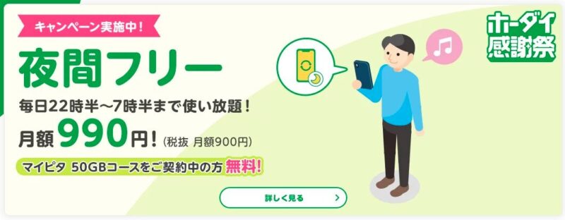 [出典:IIJmio公式サイト]老舗プロバイダーによる信頼性の高い通信が強み。端末セット割引が豊富で、複数台持ちやサブ回線運用にも最適。通信の安定性・サポート・コスパを総合的に評価できる一社です。