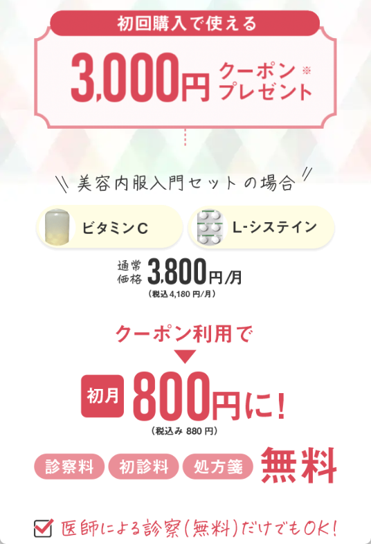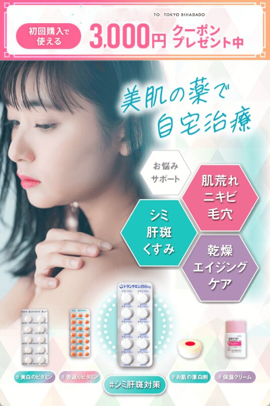 ※本サービスを利用したオンライン診察は保険適用外の自由診療となります ※クーポンは美肌処方セットにご利用いただけます。東京美肌堂とは?
